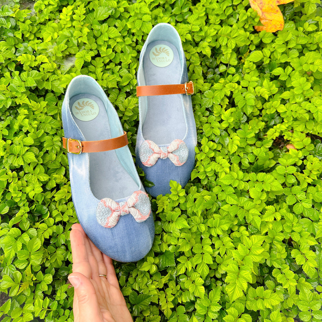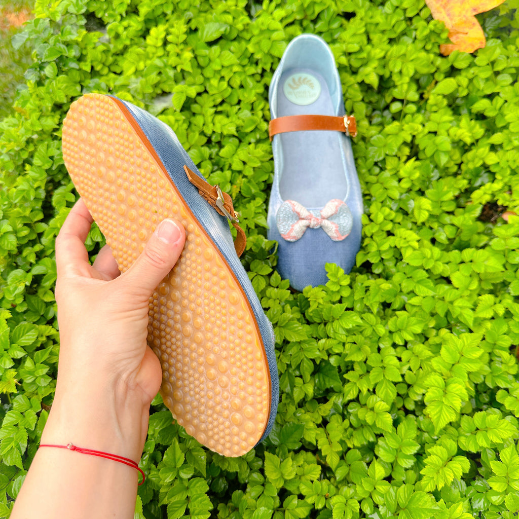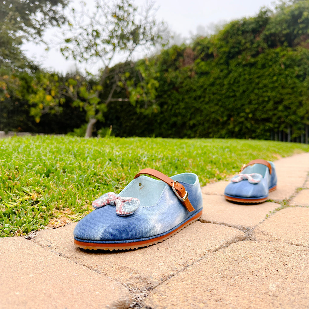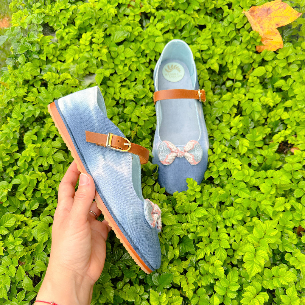 Handmade with love, these artisan Mary Janes are part of my sustainable shoe brand — created for comfort, charm, and timeless wear. Featuring hand-dyed blue linen, a decorative bow, and an adjustable leather strap, they’re designed to bring both playfulness and elegance into your everyday steps. Each pair is carefully crafted by hand, blending slow fashion values with thoughtful design.