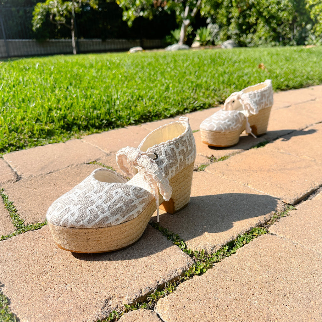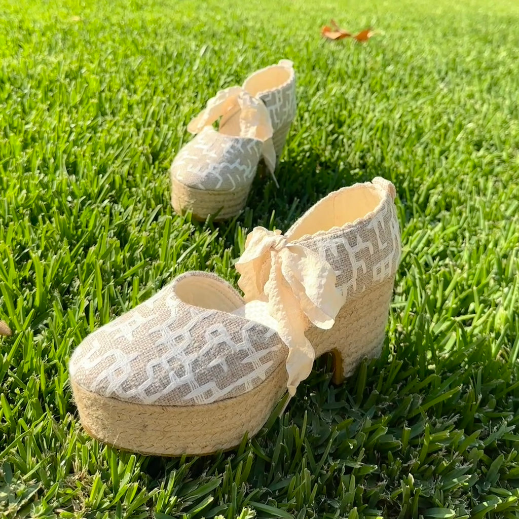 Handmade with love, these artisan espadrille platforms are part of my sustainable shoe brand — designed to combine comfort, style, and authenticity. Featuring a natural jute sole, natural linen with an embroidery white pattern, and elegant ankle ties, they’re the kind of heels that make a statement while staying versatile. Each pair is carefully crafted by hand, blending slow fashion values with timeless wearability. Perfect for everyday elegance, special gatherings, or elevating your casual looks.